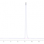 The protein has a predicted MW of 82.09 kDa. Due to glycosylation, the protein migrates to 90-110 kDa based on Tris-Bis PAGE result.