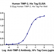 Immobilized Human Human TIMP-2, His Tag at 0.2ug/ml (100ul/well) on the plate. Dose response curve for Anti-TIMP-2 Antibody, hFc Tag with the EC50 of 18.8ng/ml determined by ELISA. See testing image for detail.