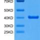 The protein has a predicted MW of 32.9 kDa. Due to glycosylation, the protein migrates to 38-45 kDa based on Tris-Bis PAGE result.