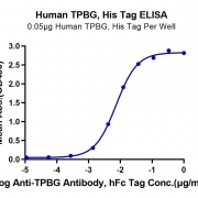 Immobilized Human TPBG, His Tag at 0.5ug/ml (100ul/Well) on the plate. Dose response curve for Anti-TPBG Antibody, hFc Tag with the EC50 of 7.3ng/ml determined by ELISA. See testing image for detail.