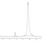The protein has a predicted MW of 11.11 kDa. Due to glycosylation, the protein migrates to 25-35 kDa based on Tris-Bis PAGE result.