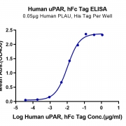Immobilized Human PLAU, His Tag at 0.5ug/ml (100ul/Well) on the plate. Dose response curve for Human uPAR, hFc Tag with the EC50 of 10.3ng/ml determined by ELISA. See testing image for detail.
