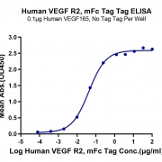 Immobilized Human VEGF165 1ug/ml (100ul/Well) on the plate. Dose response curve for Human VEGF R2, mFc Tag with the EC50 of 42.3ng/ml determined by ELISA. See testing image for detail.