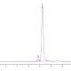 The protein has a predicted MW of 258 kDa. Due to glycosylation, the protein migrates to 260-265 kDa under Non reducing (N) condition based on Tris-Bis PAGE result.