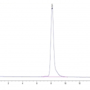 The protein has a predicted MW of 71.83 kDa. Due to glycosylation, the protein migrates to 73-83 kDa based on Tris-Bis PAGE result.