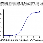Immobilized Human&Mouse Chimeric WT-1 (HLA-A*02:01) , His Tag at 5ug/ml (100ul/well) on the plate. Dose response curve for Anti-WT-1 (HLA-A*02:01) Antibody, hFc Tag with the EC50 of 28.1ng/ml determined by ELISA. See testing image for detail.
