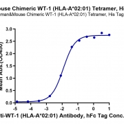 Immobilized Human&Mouse Chimeric WT-1 (HLA-A*02:01) Tetramer, His Tag at 2ug/ml (100ul/well) on the plate. Dose response curve for Anti-WT-1 (HLA-A*02:01) Antibody, hFc Tag with the EC50 of 11.8ng/ml determined by ELISA. See testing image for detail.
