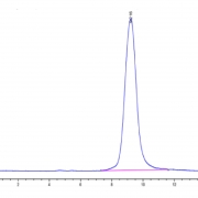 The protein has a predicted MW of 15.24 kDa. Due to glycosylation, the protein migrates to 30-55 kDa based on Tris-Bis PAGE result.