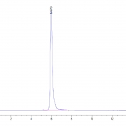 The protein has a predicted MW of 51.3 kDa. Due to glycosylation, the protein migrates to 52-70 kDa based on Tris-Bis PAGE result.