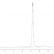 The protein has a predicted MW of 66.40 kDa. Due to glycosylation, the protein migrates to 68-72 kDa based on Tris-Bis PAGE result.