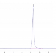 The protein has a predicted MW of 34.85 kDa. Due to glycosylation, the protein migrates to 45-50 kDa based on Tris-Bis PAGE result.