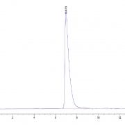 The protein has a predicted MW of 57.2 kDa. Due to glycosylation, the protein migrates to 70-100 kDa based on Tris-Bis PAGE result.