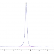 The protein has a predicted MW of 101.11 kDa. Due to glycosylation, the protein migrates to 115-125 kDa based on Tris-Bis PAGE result.