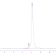 The protein has a predicted MW of 36.2 kDa. Due to glycosylation, the protein migrates to 40-45 kDa based on Tris-Bis PAGE result.