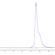 The protein has a predicted MW of 26.89 kDa. Due to glycosylation, the protein migrates to 38-55 kDa based on Tris-Bis PAGE result.