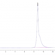 The protein has a predicted MW of 38.4 kDa. Due to glycosylation, the protein migrates to 40-50 kDa based on Tris-Bis PAGE result.