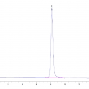 The protein has a predicted MW of 24.6 kDa. Due to glycosylation, the protein migrates to 48-55 kDa based on Tris-Bis PAGE result.