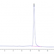 The protein has a predicted MW of 24.98 kDa. Due to glycosylation, the protein migrates to 42-52 kDa based on Tris-Bis PAGE result.