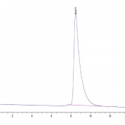 The protein has a predicted MW of 25.78 kDa. Due to glycosylation, the protein migrates to 40-50 kDa based on Tris-Bis PAGE result.