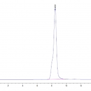 The protein has a predicted MW of 24.2 kDa. Due to glycosylation, the protein migrates to 26-28 kDa based on Tris-Bis PAGE result.