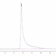 The protein has a predicted MW of 35.2 kDa. Due to glycosylation, the protein migrates to 40-45 kDa based on Tris-Bis PAGE result.