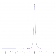 The protein has a predicted MW of 41.8 kDa. Due to glycosylation, the protein migrates to 55-65 kDa based on Tris-Bis PAGE result.
