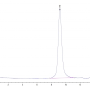 The protein has a predicted MW of 69.1 kDa. Due to glycosylation, the protein migrates to 80-110 kDa based on Tris-Bis PAGE result.