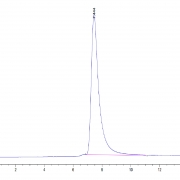 The protein has a predicted MW of 30.9 kDa. Due to glycosylation, the protein migrates to 40-50 kDa based on Tris-Bis PAGE result.