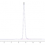 The protein has a predicted MW of 36.6 kDa. Due to glycosylation, the protein migrates to 50-70 kDa based on Tris-Bis PAGE result.