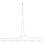 The protein has a predicted MW of 26.5 kDa. Due to glycosylation, the protein migrates to 40-50 kDa based on Tris-Bis PAGE result.