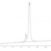 The protein has a predicted MW of 67.54 kDa. Due to glycosylation, the protein migrates to 75-85 kDa based on Tris-Bis PAGE result.