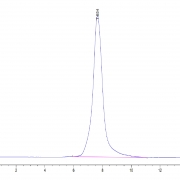 The protein has a predicted MW of 50.9 kDa. Due to glycosylation, the protein migrates to 60-70 kDa based on Tris-Bis PAGE result.