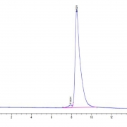 The protein has a predicted MW of 47.51 kDa. Due to glycosylation, the protein migrates to 55-60 kDa based on Tris-Bis PAGE result.