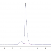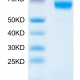 The protein has a predicted MW of 45.9 kDa. Due to glycosylation, the protein migrates to 68-70 kDa based on Tris-Bis PAGE result.