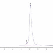 The protein has a predicted MW of 43.72 kDa. Due to glycosylation, the protein migrates to 55-65 kDa based on Tris-Bis PAGE result.