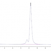 The protein has a predicted MW of 64.3 kDa. Due to glycosylation, the protein migrates to 70-75 kDa based on Tris-Bis PAGE result.