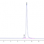 The protein has a predicted MW of 95.99 kDa. Due to glycosylation, the protein migrates to 100-110 kDa based on Tris-Bis PAGE result.