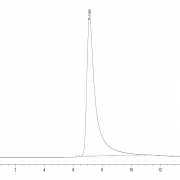 The protein has a predicted MW of 94.7 kDa. Due to glycosylation, the protein migrates to 95-110 kDa based on Tris-Bis PAGE result.