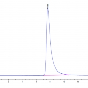 The protein has a predicted MW of 57.95 kDa. Due to glycosylation, the protein migrates to 60-70 kDa based on Tris-Bis PAGE result.