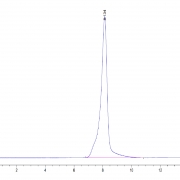 The protein has a predicted MW of 59.4 kDa. Due to glycosylation, the protein migrates to 60-70 kDa based on Tris-Bis PAGE result.