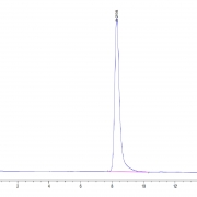 The protein has a predicted MW of 58.4 kDa. Due to glycosylation, the protein migrates to 65-70 kDa based on Tris-Bis PAGE result.