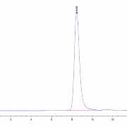 The protein has a predicted MW of 48.7 kDa. Due to glycosylation, the protein migrates to 52-58 kDa based on Tris-Bis PAGE result.