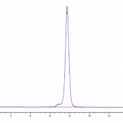 The protein has a predicted MW of 47.7 kDa. Due to glycosylation, the protein migrates to 68-72 kDa based on Tris-Bis PAGE result.