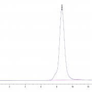The protein has a predicted MW of 26.3 kDa. Due to glycosylation, the protein migrates to 50-70 kDa based on Tris-Bis PAGE result.