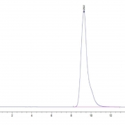 The protein has a predicted MW of 25.36 kDa. Due to glycosylation, the protein migrates to 33-43 kDa based on Tris-Bis PAGE result.