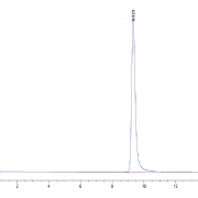 The protein has a predicted MW of 25.3 kDa. Due to glycosylation, the protein migrates to 35-40 kDa based on Tris-Bis PAGE result.