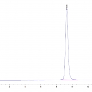 The protein has a predicted MW of 24.7 kDa. Due to glycosylation, the protein migrates to 35-40 kDa based on Tris-Bis PAGE result.