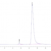 The protein has a predicted MW of 34.3 kDa. Due to glycosylation, the protein migrates to 40-45 kDa based on Tris-Bis PAGE result.
