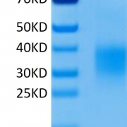 The protein has a predicted MW of 15.2 kDa. Due to glycosylation, the protein migrates to 30-40 kDa based on Tris-Bis PAGE result.
