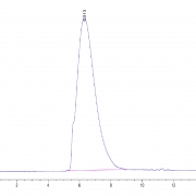 The protein has a predicted MW of 59.9 kDa. Due to autocatalytic cleavage, the protein migrates to 32-35 kDa based on Tris-Bis PAGE result.